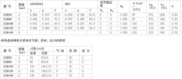 光学玻璃的分类及命名等说明